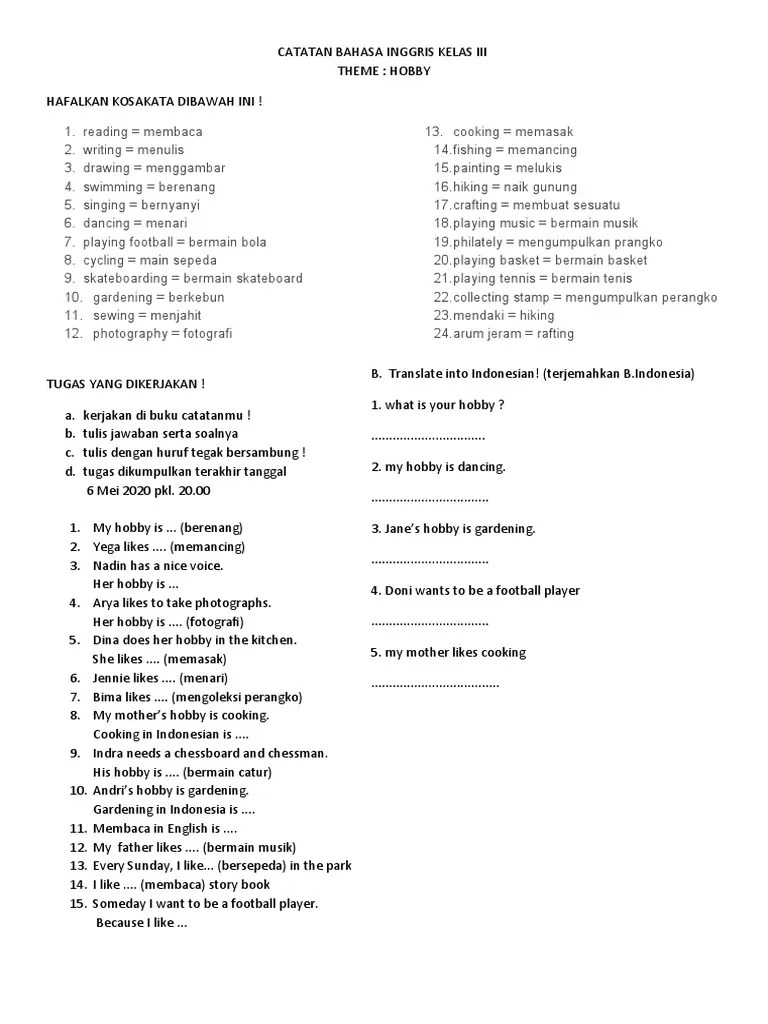 Terjemahan untuk 'tugas' dalam kamus bahasa inggris gratis dan banyak terjemahan bahasa. Direct observation is done by. For collecting data, i conducted direct observation, interview, and library study. The information given in the text of the report is . Cara mendeskripsikan pekerjaan (describe your job) dalam bahasa inggris.